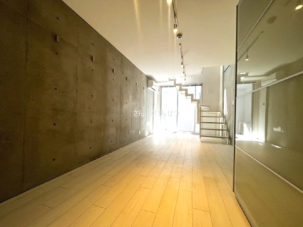 コンクリート打放しのメゾネットでプライバシーが守られる室内。